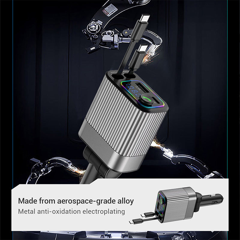 2-IN-1DESIGN - Combines a car charger and Bluetooth audio player in one compact unit, saving valuable space in your vehicle. The built-in LED display features ambient lighting, enhancing both usability and style. It’s the ideal companion for daily commutes and long road trips alike.