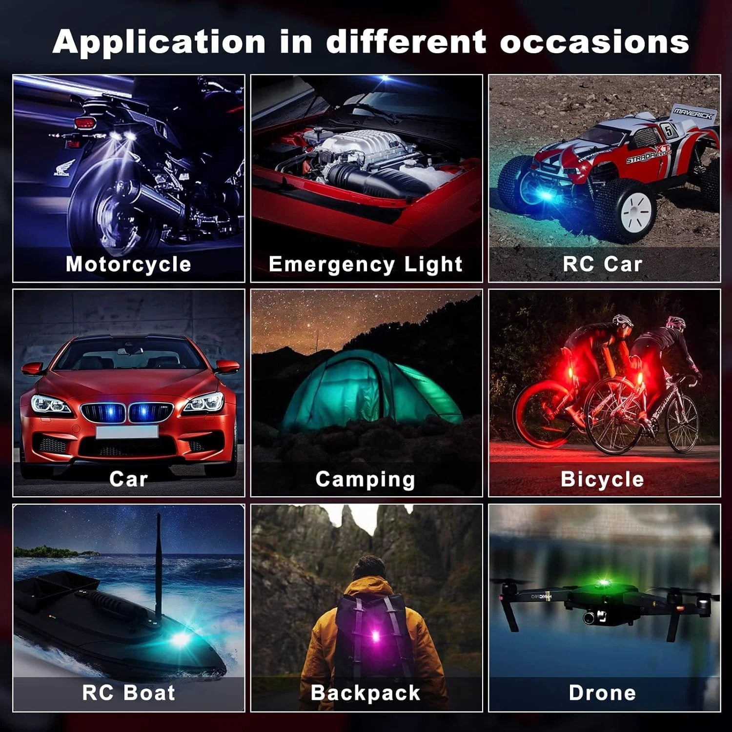 Wide Application: Drone anti-collision lights are suitable for Drone DJI Air 2S / Mini 2 / Mavic Air 2 / Mavic Mini / Mavic Pro / FPV / Holy Stone. Additionally, the strobe light can be used for RC car, RC boat, E-bike, motocross, camping, fishing, hiking, truck emergency.