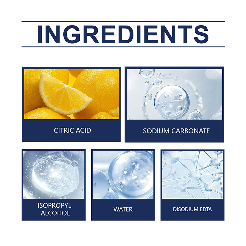 Ingredients: Water, Citric Acid, Sodium Carbonate, Disodium EDTA, Isopropyl Alcohol
