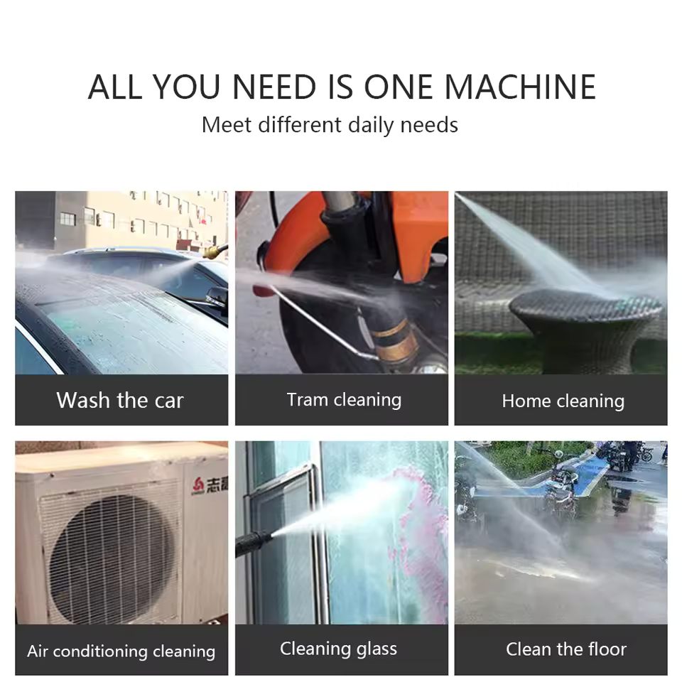 MULTIPLE WATER SPRAY MODES FOR WIDE APPLICATIONS - This high-pressure washer offers multiple spray settings, including direct jet, fan spray, and foam spray, allowing you to easily switch between modes based on your cleaning needs. It is ideal for cleaning a variety of surfaces such as air conditioners, glass, floors, cars, furniture, and more — making it a versatile cleaning solution for both home and professional use.