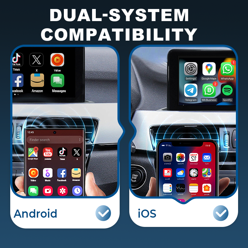 PLUG & PLAY INSTALLATION - No technical skills needed. Connect in seconds with USB or Type-C—instantly upgrades your vehicle to wireless iOS or Android Auto for seamless driving experience.